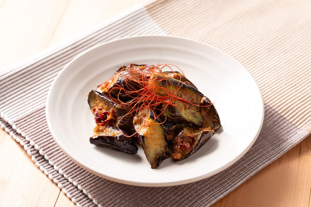 味噌だれを作っておく。ナスをサラダ油で炒める。合わせ調味料Aを加え、ひと煮たちしアルコールを飛ばす。味噌だれを加えて煮からめる。お好みで、糸唐辛子をトッピング。