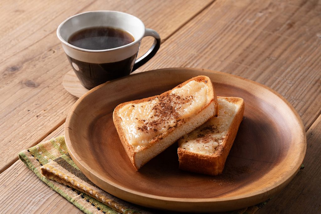 食パンに甘酒を塗り、オーブントースターで焼く。仕上げにシナモンパウダーをふりかける。お好みではちみつを加えても。